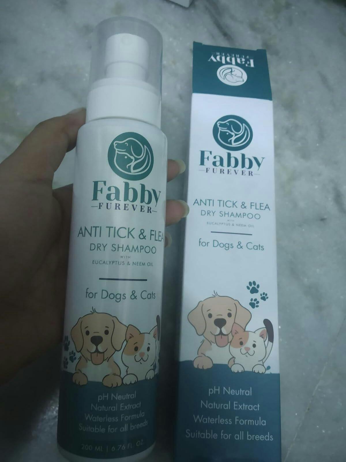 Fabby Furever Anti Tick & Flea Waterless Dry Shampoo for Dogs, Cats and Pups of All Breeds, Effective for Itching, Dry Skin and Infections, Daily Use, Natural and Safe for Pets, 200 ml